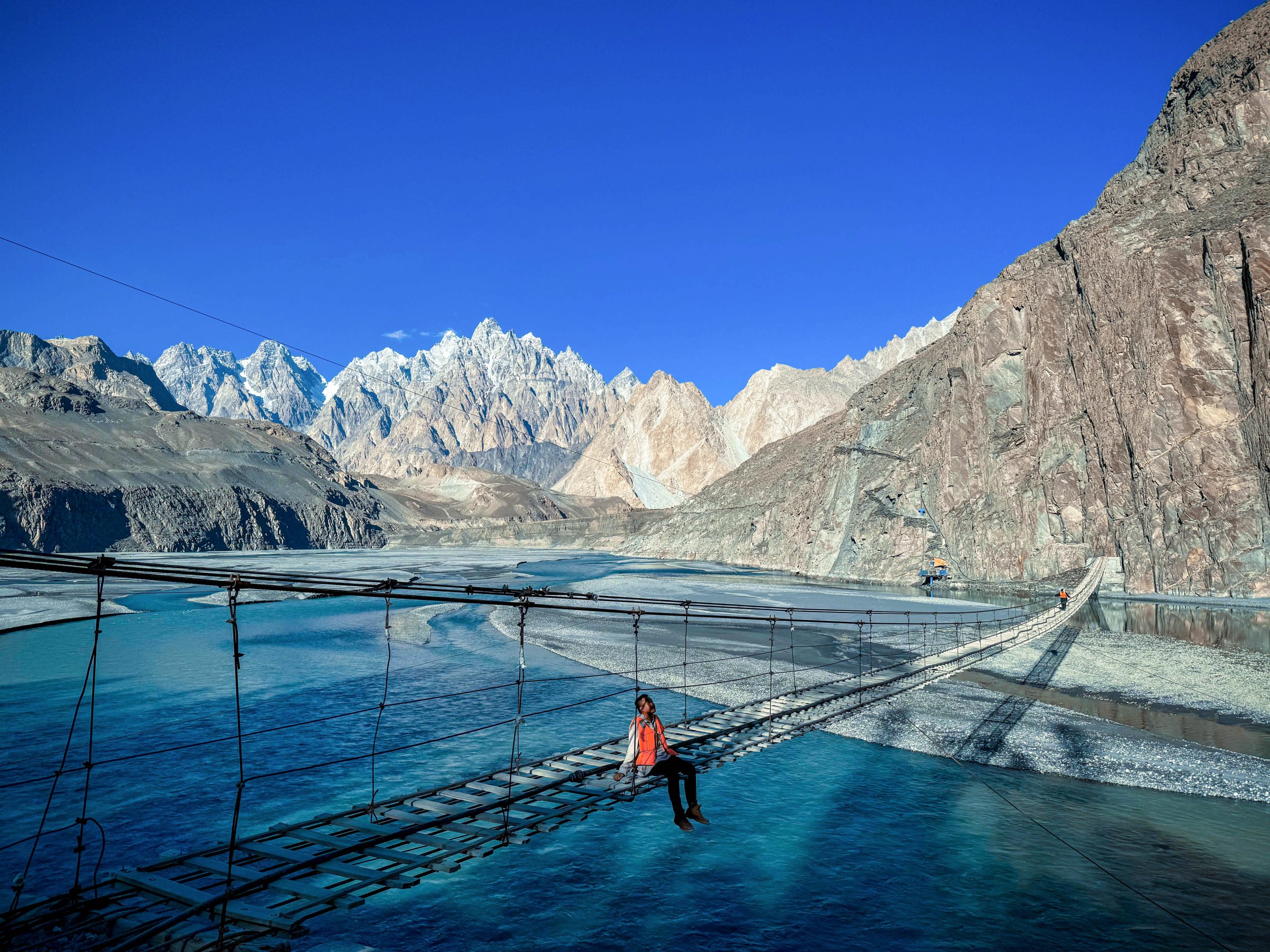 - Trên đường ghé ngang 3 dãy núi Karakoram, Himalaya và Hindu Kush giao nhau tại một điểm ngay bên cạnh dòng sông xanh – “Thiên đường núi” dành cho những người đam mê trekking.